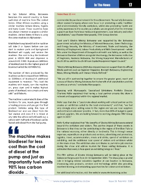 biodiesel called the ASTMD6751. “Electra Mining Botswana 2019 also enjoyed massive support from its official